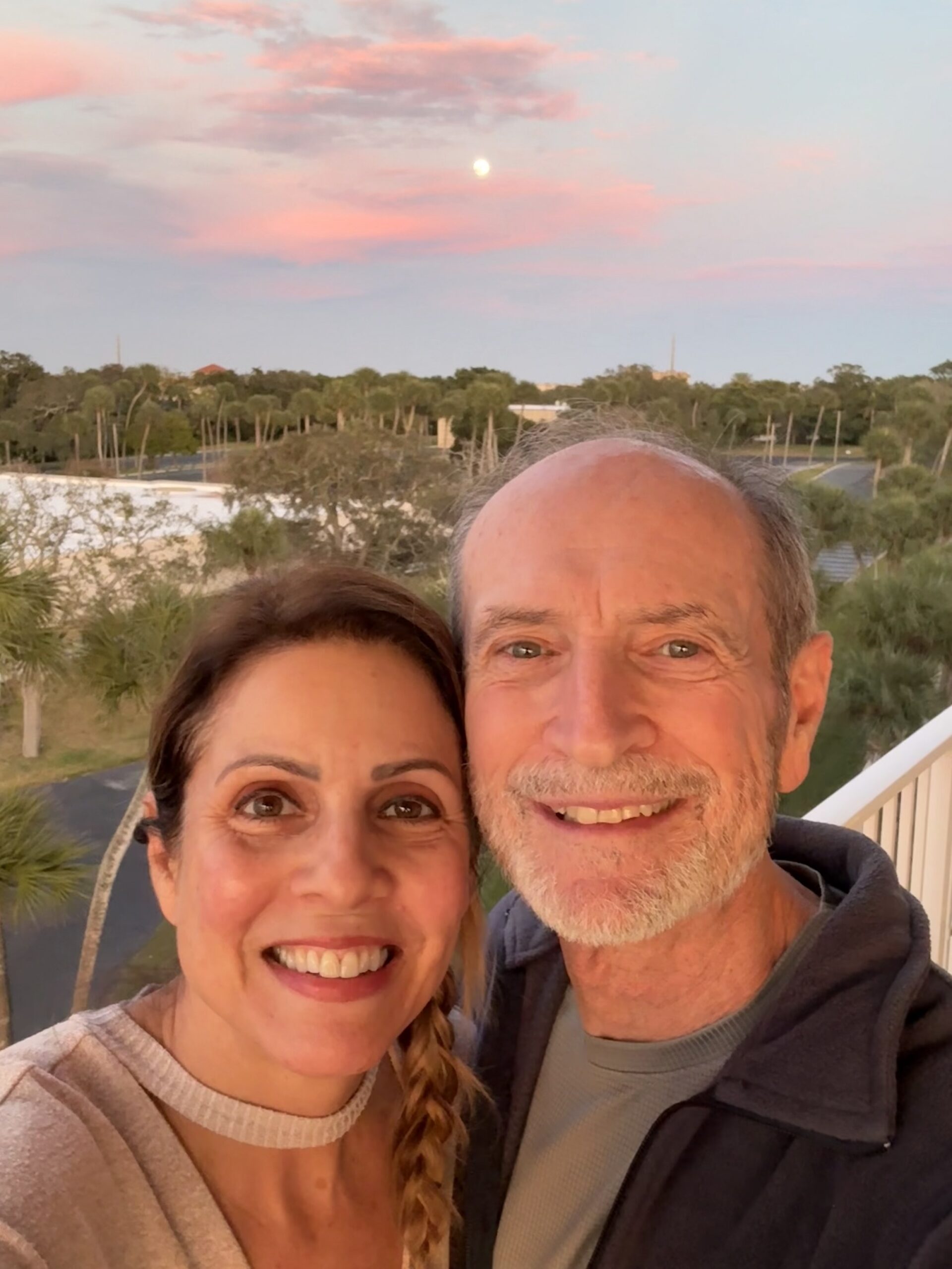 Today I worked on starting my blog and focused on organizing my office, kitchen, and closets, batch cooking, and game night. And please don’t judge… no makeup! It was wonderful to enjoy a sunset, with a moonrise on the other side of our balcony.